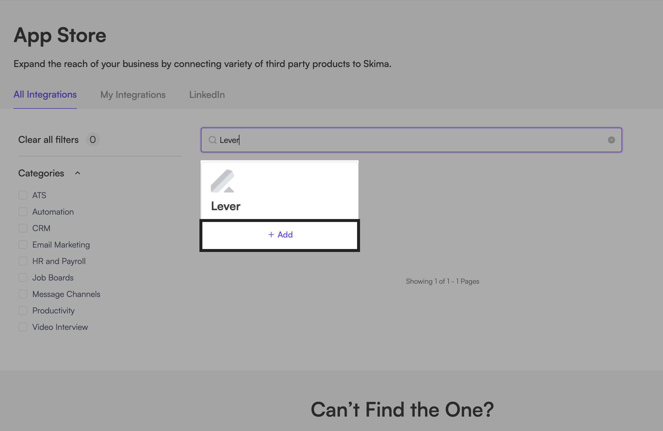 - Search for Lever under My Integrations.