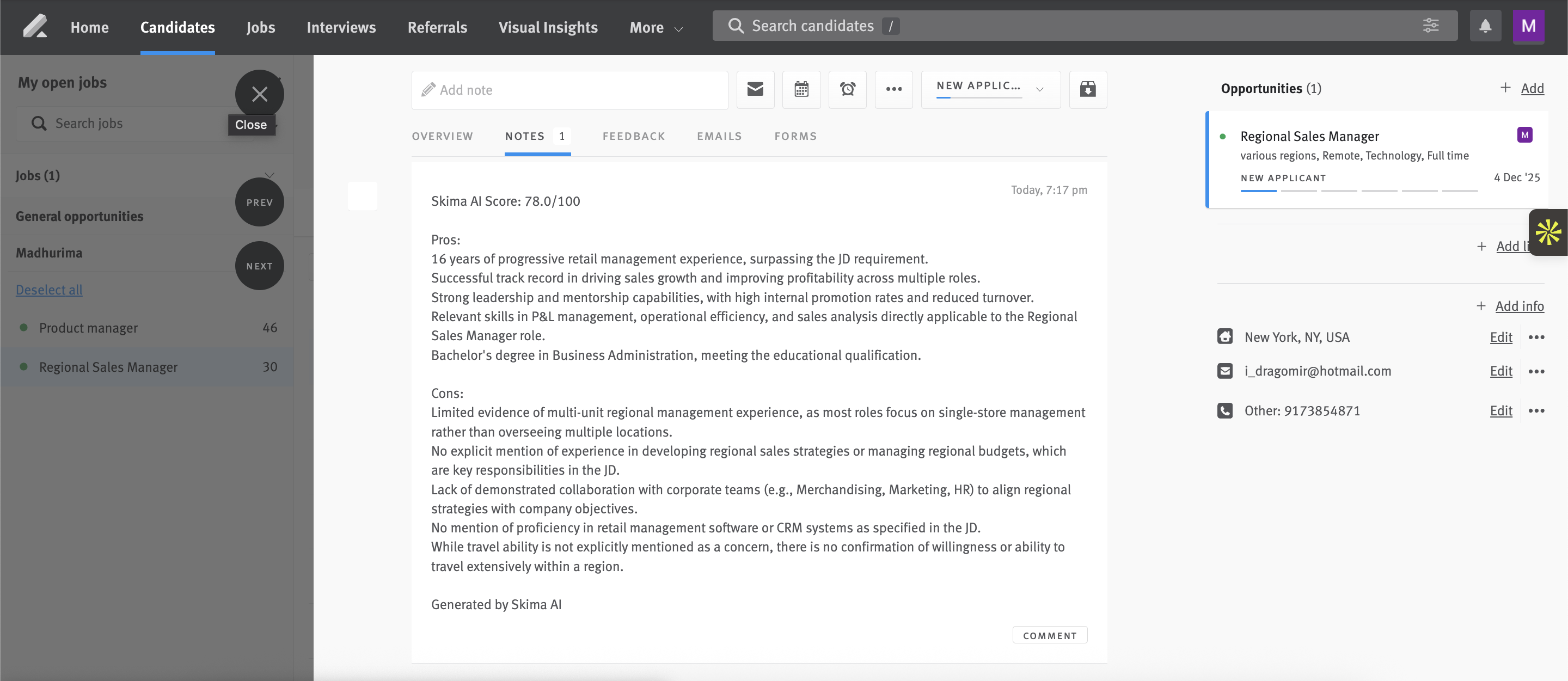 Skima AI can also push updates back to Lever, such as tags or notes added during the AI matching process.